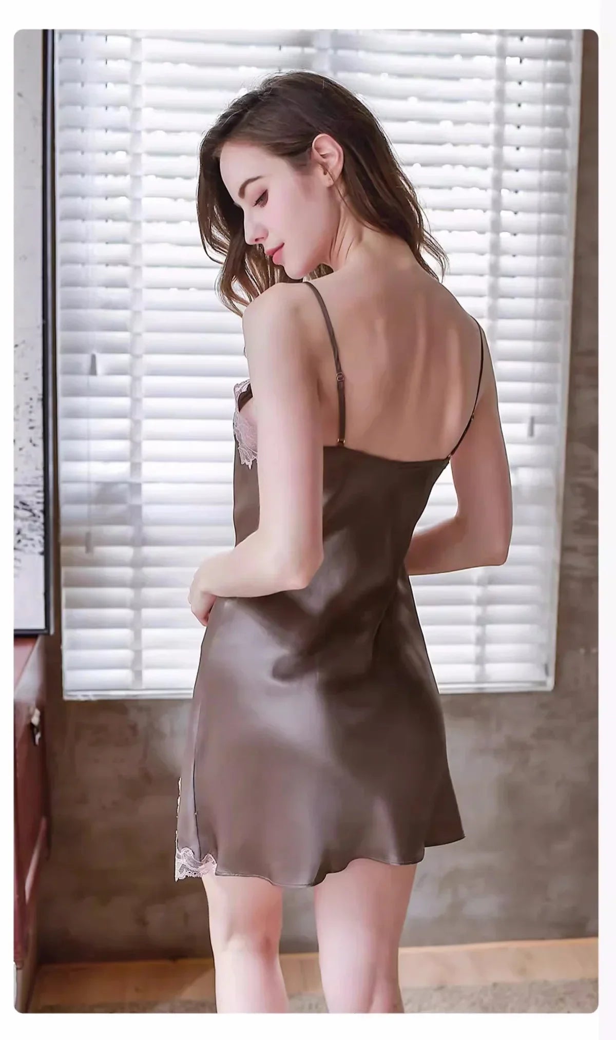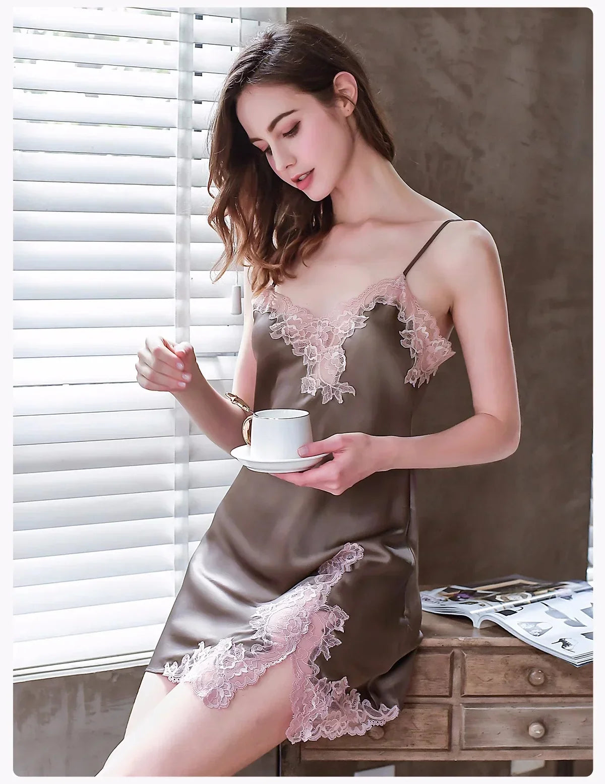Silk Lace Edge Split Nightgown Sexy Underdres